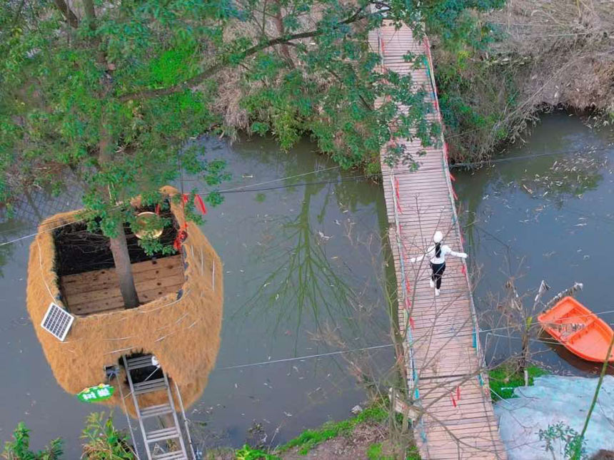 经过几座民房后,是一片松树林,听说里面有野猪出没,当地村民还专门设了网准备捕获。