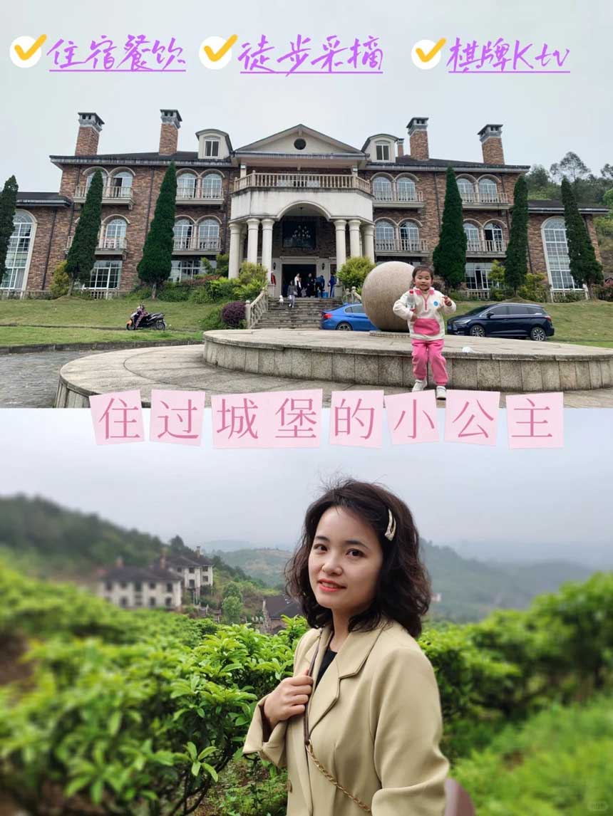 一座外观十分童话的城堡, 居然就在璧山天一农庄 江北过去差不多40分钟即可,初见第一眼就觉得很好看 周围也是一片绿意~ 旁边一座山都种着枇杷这座城堡主要是餐饮与棋牌娱乐的地方 入住的房间在城堡后面两栋 每层大概六七间大床/标间。 房间干净整洁,空气特别好~这边可以点餐,也可以选择三餐一宿的方式,成人260元~据说节假日和平时都一样,所以想五一出行的赶紧预定。1.2米以下的宝贝不收费