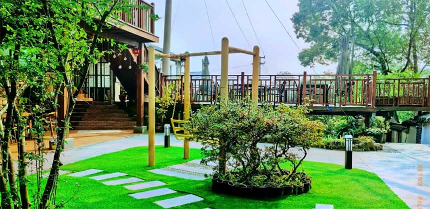 农家乐始建于1998年,2015年完成装修,建筑面积约1800平方米,依山而建,绿化覆盖率达50%以上,设有露天花园、自助烧烤区及多种健身器材