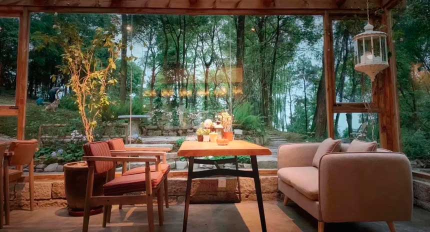 民宿占地面积约5亩,有3间客房,配有中茶厅、咖啡厅、花园餐厅、书吧、会议室、烧烤场、露营场和林下花园等。这里远离城市的喧嚣,游客可回归田野山间,体验慢生活。