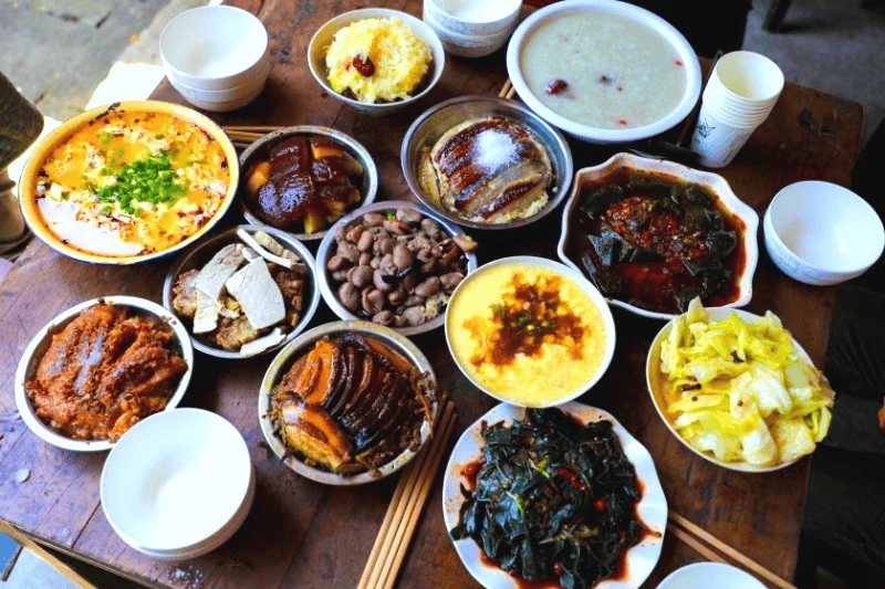 简介📢选用鱼池村当季天然食材,村里老厨师制作,糯米鸡、老腊肉、红苕丝回锅肉、凉拌扎耳根,每一道菜都是乡情,每一口都是乡愁。