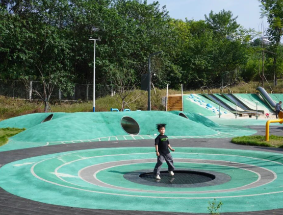 此外,公园的扬帆乐园滑梯蜿蜒如乘风破浪的船帆沙坑藏着挖沙寻宝的乐趣墨石秘境有着川西“墨石公园”般的独特景色黑色怪石嶙峋排布如被墨色晕染