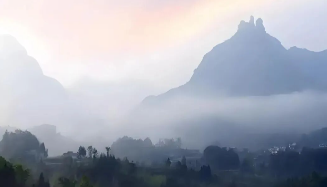 更令人称奇的是其气象景观——云雾如瀑、云海翻腾、奇峰隐约,尤以“武陵雾雨”、“羽人烟鬟”等雨雾奇观闻名,早在古代就被列入“黔江十二景”。其生态环境原始丰富,虽石奇土松,却从未发生山崩,山上古树参天,珍稀动植物繁衍生息,堪称自然与生态的双重奇迹。