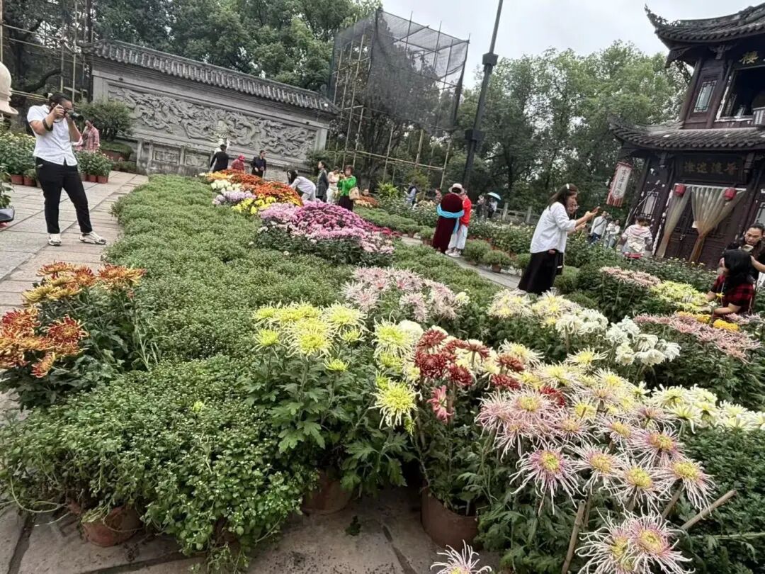 华岩寺的菊花虽没有鹅岭公园的面积大但独本菊、造型菊、多头菊盆景菊等依旧十分精美