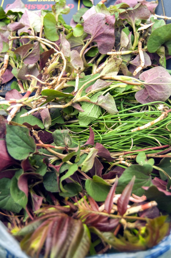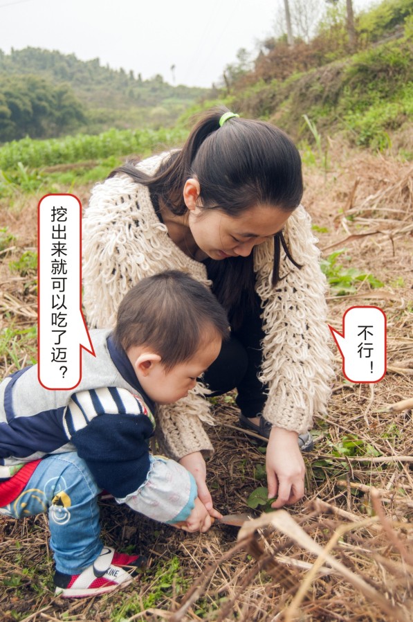 热啦哈身,一大家子沿到水天池边边的车道往大学城方向开去,找了一片田坎,急吼吼的众人拿起“武器”就跳车啦,深怕折耳根跑了样。连小幺儿都长见识了,撒子折耳根,椿芽,野葱,荠菜...都认得到了,嘞些都是学校学不到的哟。