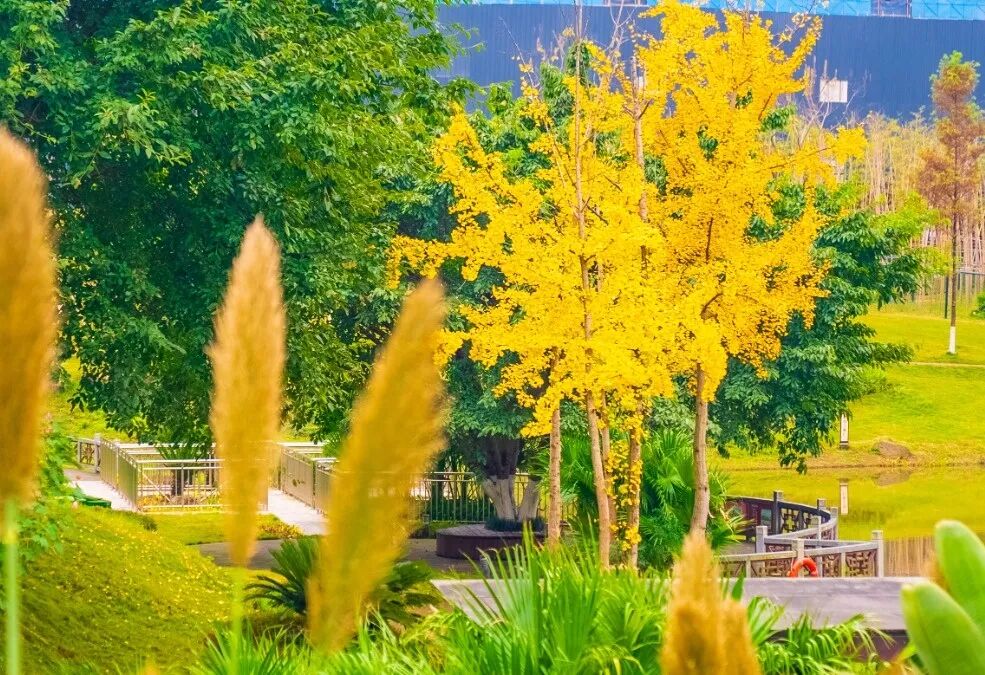 滨江新城 滨江新城的银杏林已迎来最佳观赏期漫步其间仿佛步入了一场梦幻的童话一排排银杏树叠翠流金,微风轻拂银杏叶似蝴蝶飞舞,翩翩飘落