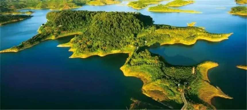 长寿湖 水阔岛秀,鱼果清芬 是中国西南湖泊景区的冠冕 而太极岛 是湖与岛的绝配,是林与果的妙构 是青绿苍润铺就的静美之地