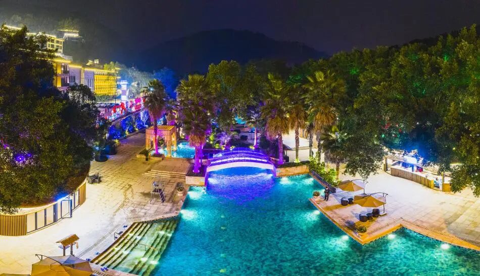 东温泉多元康养产业集群“沉浸式”疗愈地东温泉风景区位于东温泉镇境内是国家AAAA级景区集泉、洞、浴、禅、山、河、湖七大特色的自然及人文景观于一体拥有近百个养生温泉泡池和汤屋造型丰富、特色各异现有泉眼12个最高的在木耳山半腰响塘湾最低在锡滩长约数公里,高差近百米