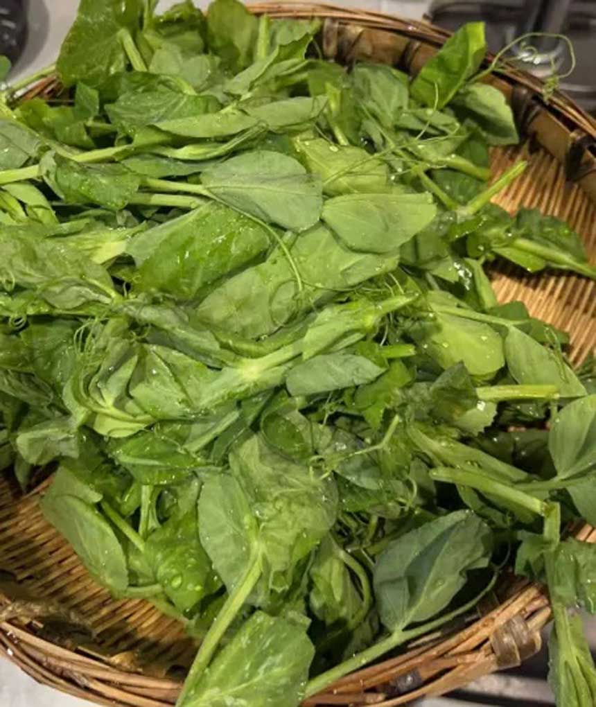 豌豆尖自带“清甜”Buff 最简单也最勾魂的吃法 便是丢进滚烫的汤锅里 “涮三秒” 筷子一捞 鲜嫩的绿叶入口即化 脆中带鲜 那股子水灵劲儿 仿佛刚从菜地里蹦进碗里