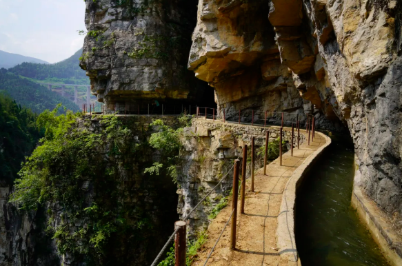 2.夏季(6-8月):最舒爽的避暑观赏地,崖壁间凉风习习,与外界炎热形成鲜明对比。此时山林植被繁茂,郁郁葱葱的绿意环绕水渠,阳光透过树叶形成斑驳光影落在渠壁上,是捕捉细节美感的绝佳时机。