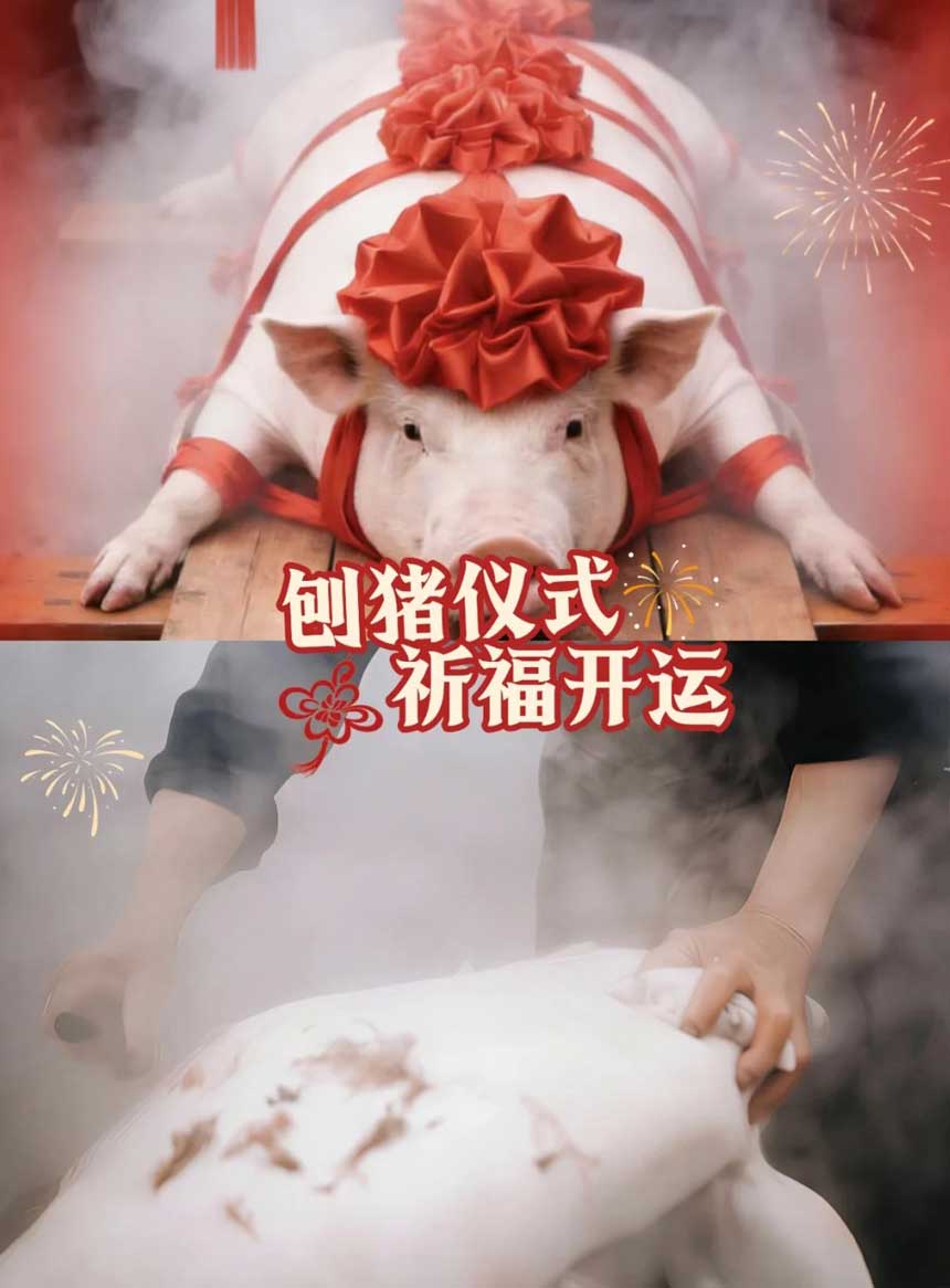 重头戏来啦!亲眼见证传统“刨猪”仪式!沾福气,接好运,讨个来年“猪”事顺利好彩头
