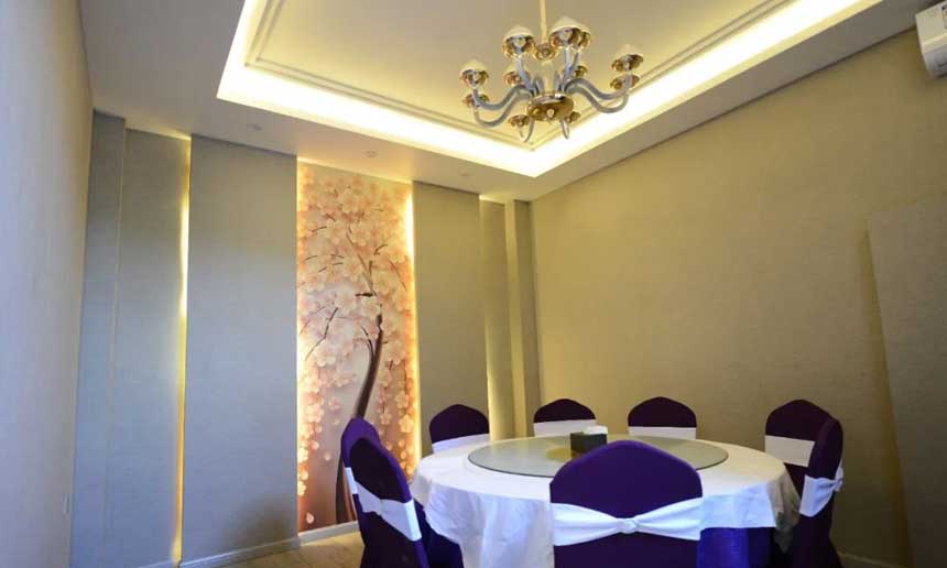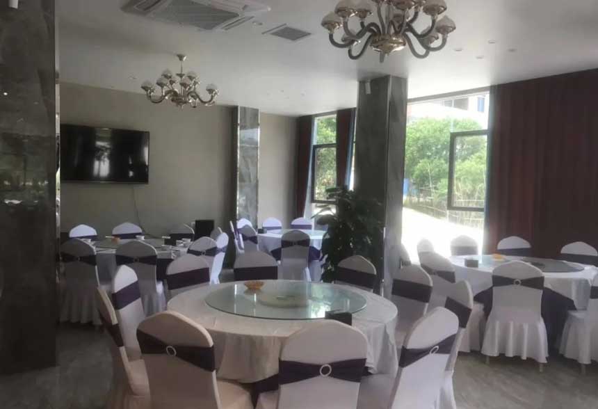 用餐大厅整齐,配有休息区,可承接100桌酒席