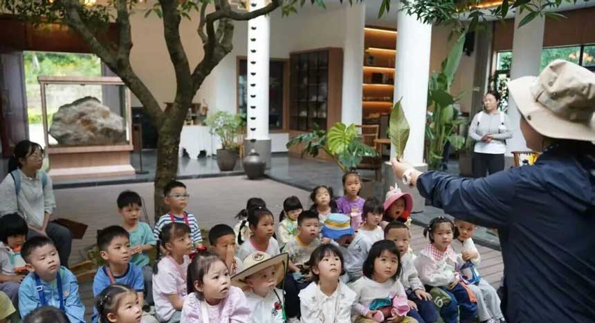 一进农场,就被满眼的绿意裹住——高大的树木遮天蔽日,天然小溪顺着田埂缓缓流淌,白墙黛瓦的建筑藏在绿植间,随手拍一张都是能刷爆朋友圈的田园大片。但别以为这里只有“颜值”,130余项自主开发的活动和课程,才是它的“王牌”。
