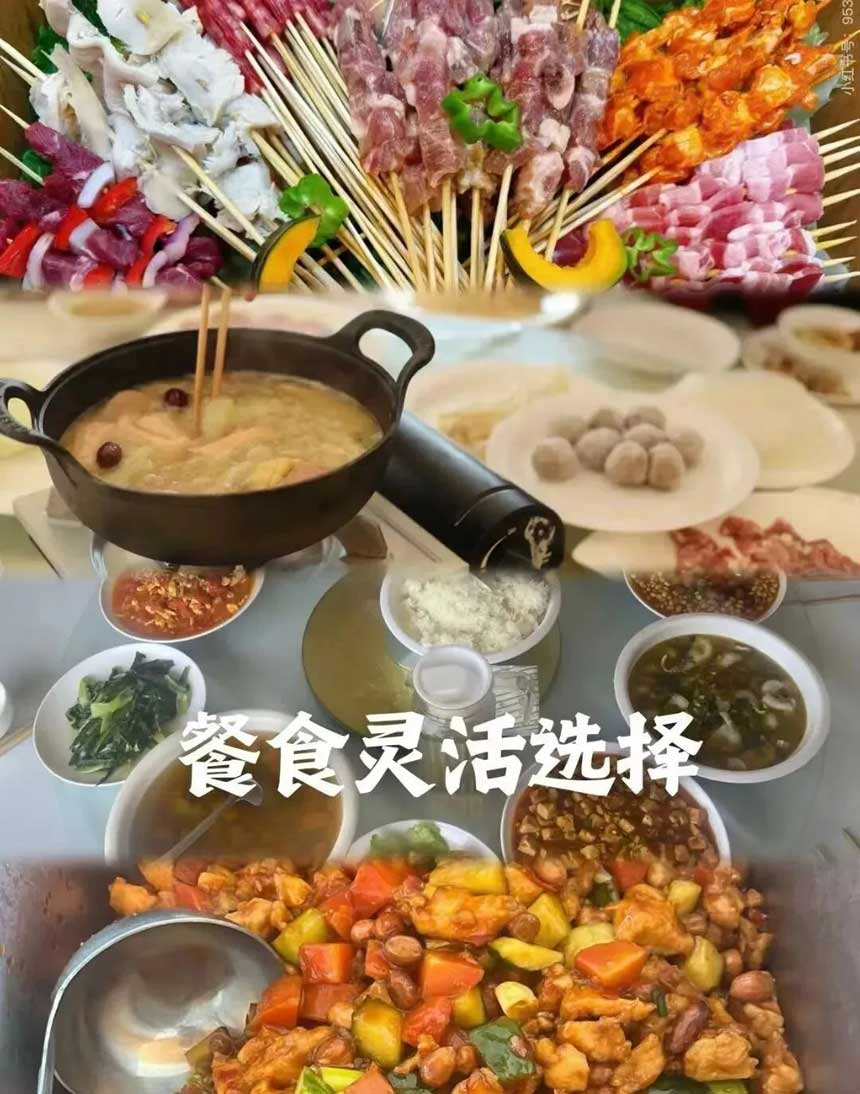 有机蔬菜做的特色中餐、滋滋冒油的田野烧烤、暖乎乎的土鸡汤锅,还有秋冬超火的围炉煮茶,从大地到餐桌的新鲜,让味蕾也跟着“度假”。