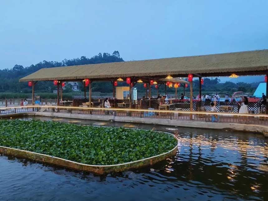 这个依托缙云山纯天然矿泉水打造的休闲渔旅综合体,200余亩的区域里,有“渔时光小院”“虾玩部落”“渔野营”“渔潮社”“渔乡Coffe”“鱼苗派对”等十六个场景,满足亲子度假与社群活动需求。