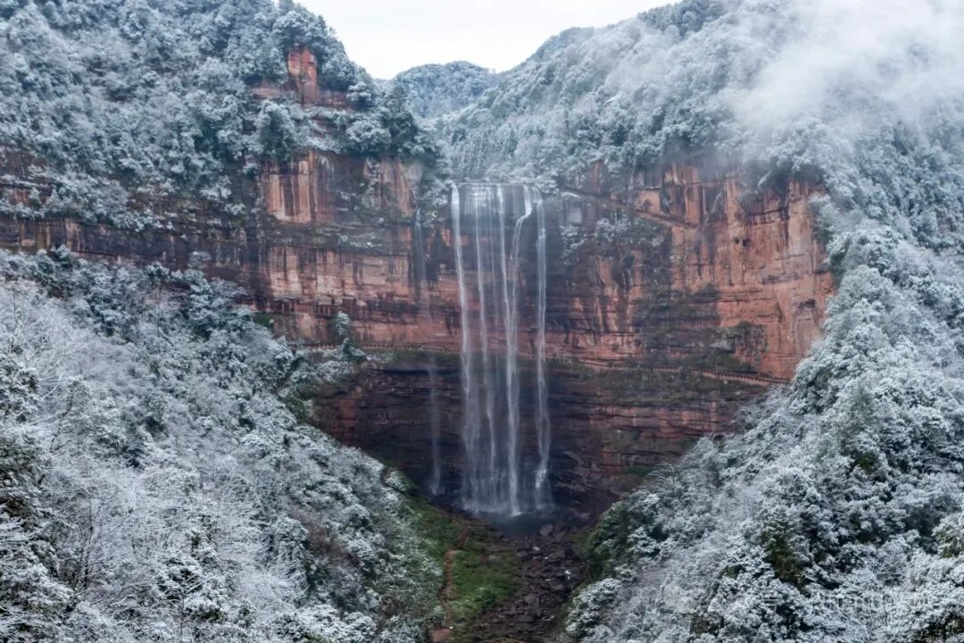 大雪让四面山的灵秀多了几分苍劲红色岩壁与洁白雪层相映成趣冰挂垂于崖壁,树枝凝霜如玉,积雪蓬松如棉深吸一口气满是冰雪与草木混合的清新气息
