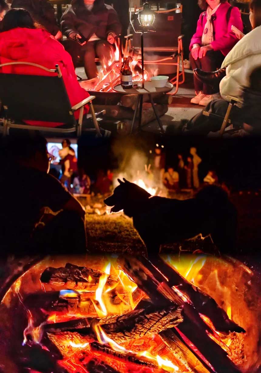 跨年棉花糖小烟花篝火派对是亮点。 夜幕降临,围坐篝火旁,火焰小烟花映着笑脸, 卡拉OK畅享新年的喜悦,甜蜜暖暖的棉花糖烤的酥脆软糯, 篝火带来温暖与团聚欢乐