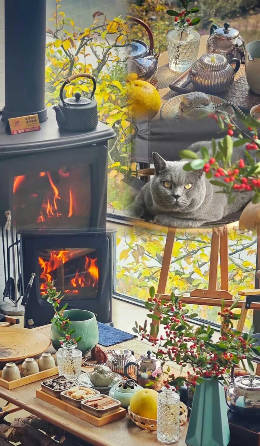 新年在野墅,更能放松心情,远离拥堵与人群的喧嚣 在壁炉边上享受热腾腾的围炉煮茶 一杯暖暖的红茶,一本有意思的书, 在野墅民宿让一只胖乎乎的蓝猫陪伴, 放下所有,感受时光慢慢,宁静甜美。