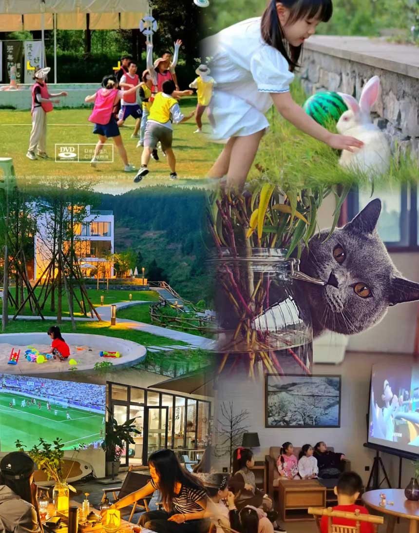 野墅的小兔子们和胖胖蓝猫小萌宠, 更是小朋友的最爱, 宽阔的大草坪,玩沙池,娱乐空间, 更让大朋友小朋友都能找到各种耍事.