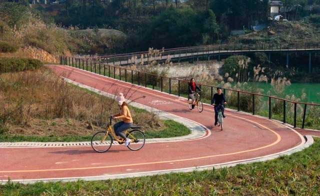 花岛湖是一个天然湖泊,湖水清澈见底,湖边有自行车赛道,自行车道全长5.2公里,宽3.5米,起点在马掌坪,途径樱花基地、松树林、花岛湖,与430米人行道相接。