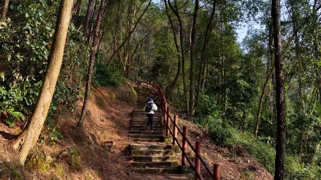 登木耳山沿着蜿蜒的登山步道向上林木参天滤净尘嚣