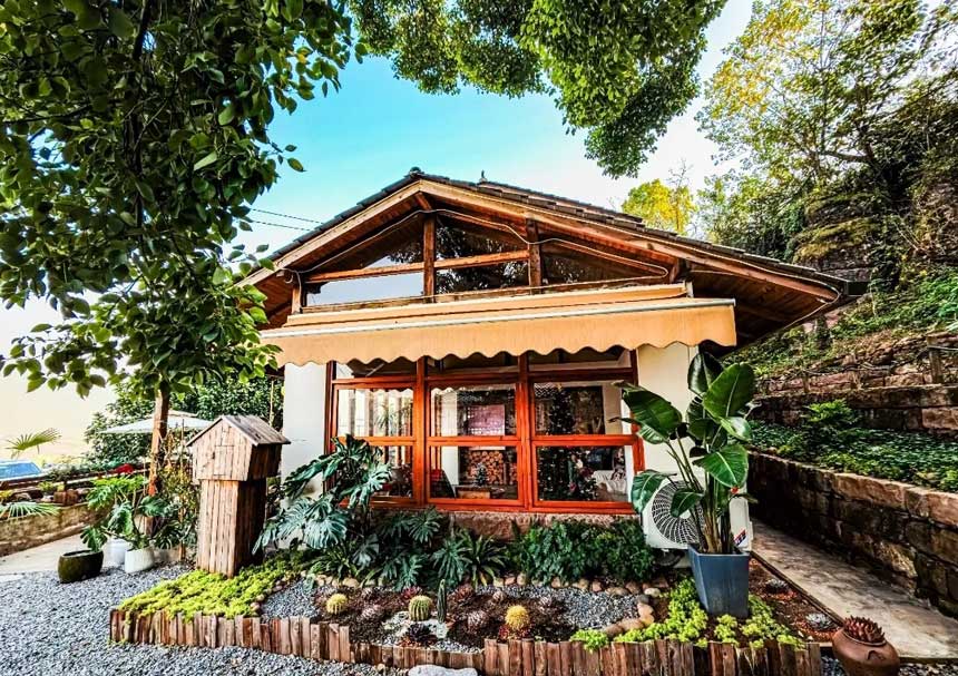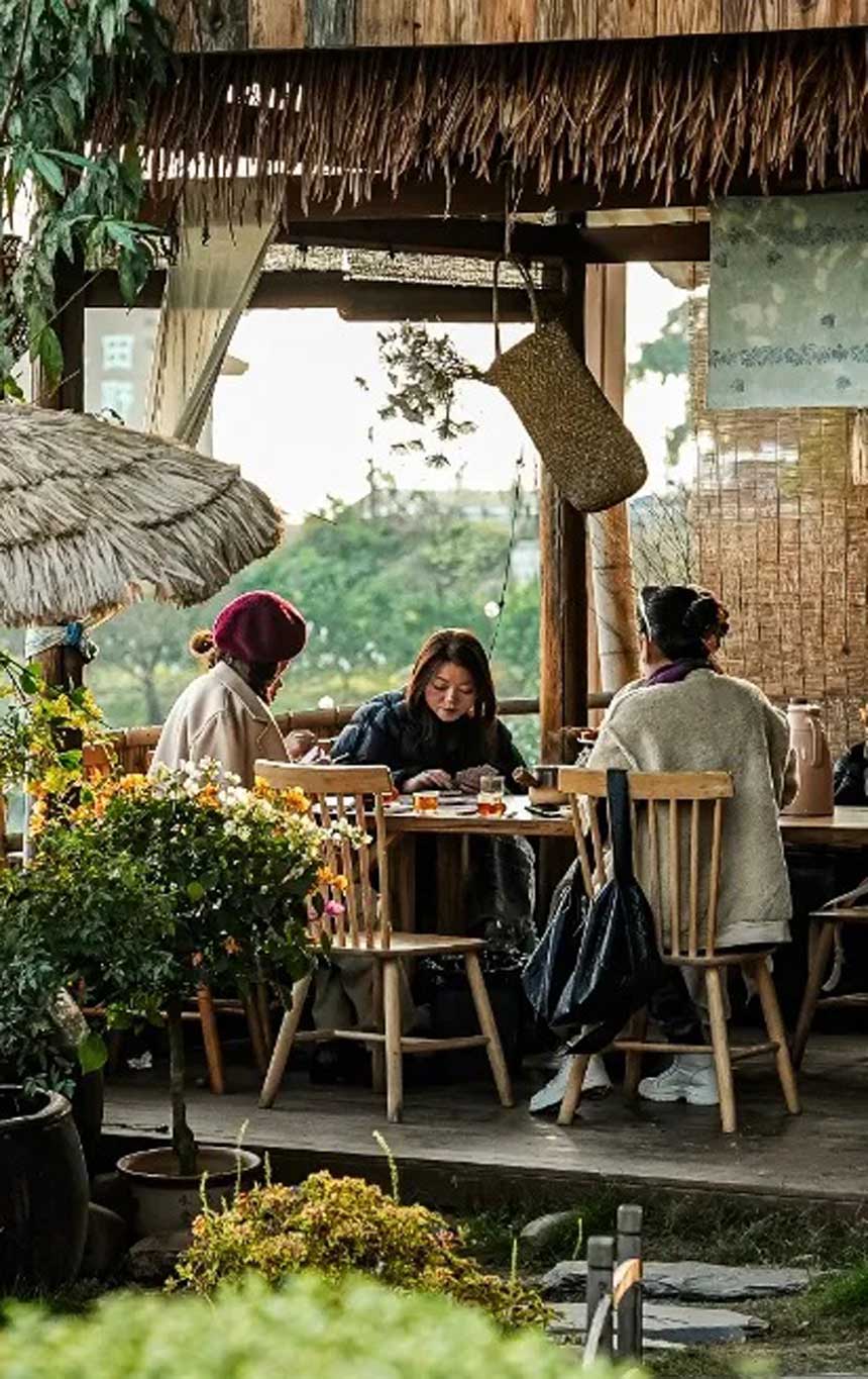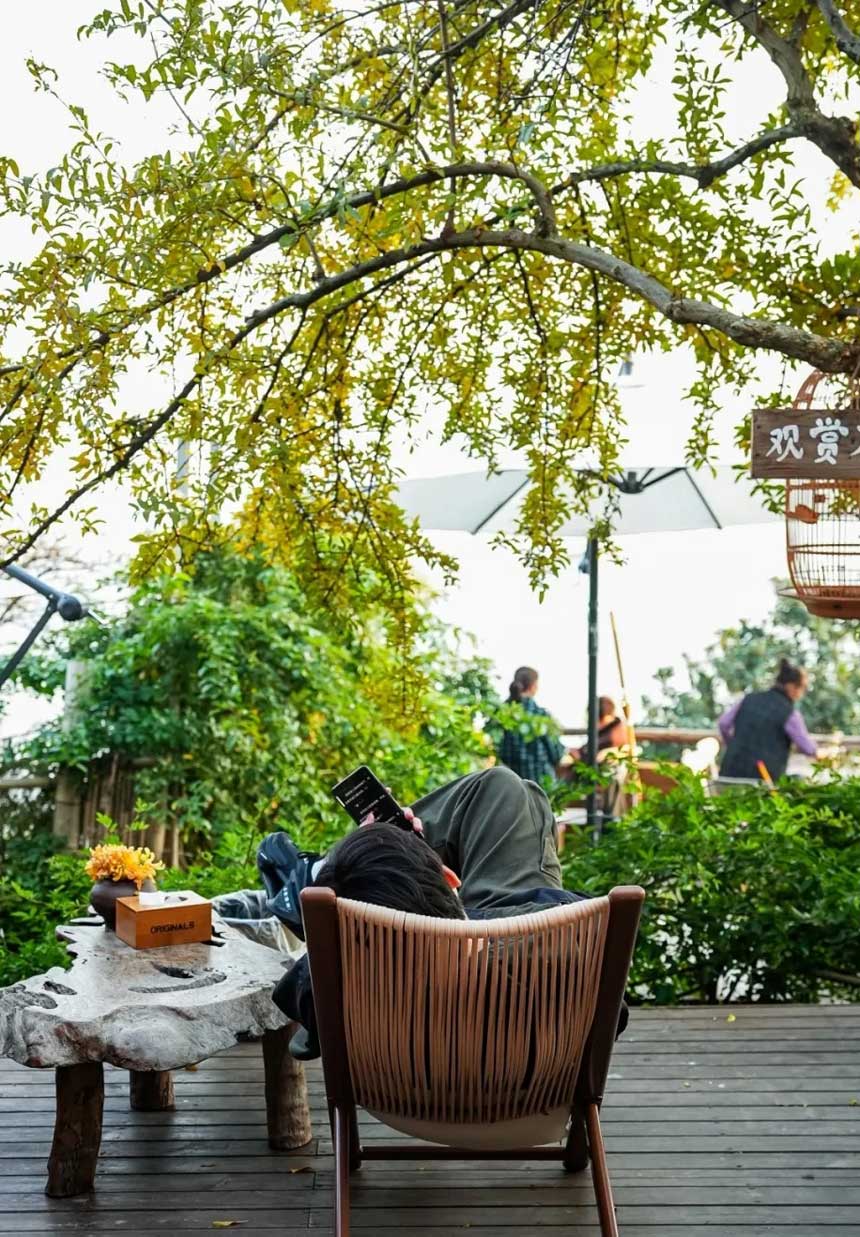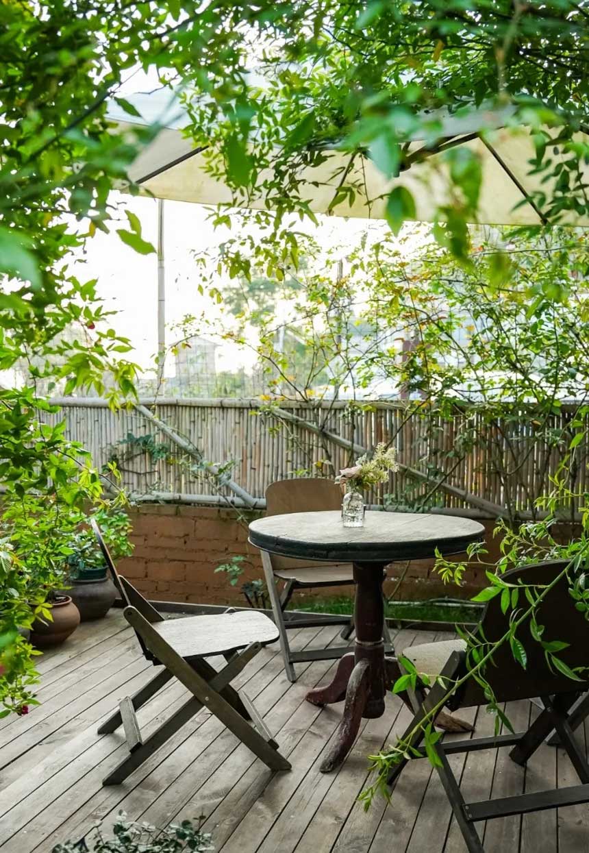 午后阳光洒在小院 你可以窝在藤椅里放松发呆 也能和朋友在绿植环绕下谈心聊天 偷得浮生半日闲