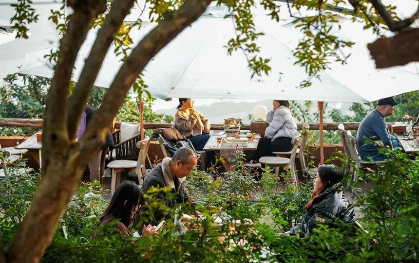 摘完柑橘 不妨到各式民宿喝场露天下午茶 点上一壶热茶、几份小食 面朝滚滚长江,背靠青翠田园 让初冬的阳光晒透后背