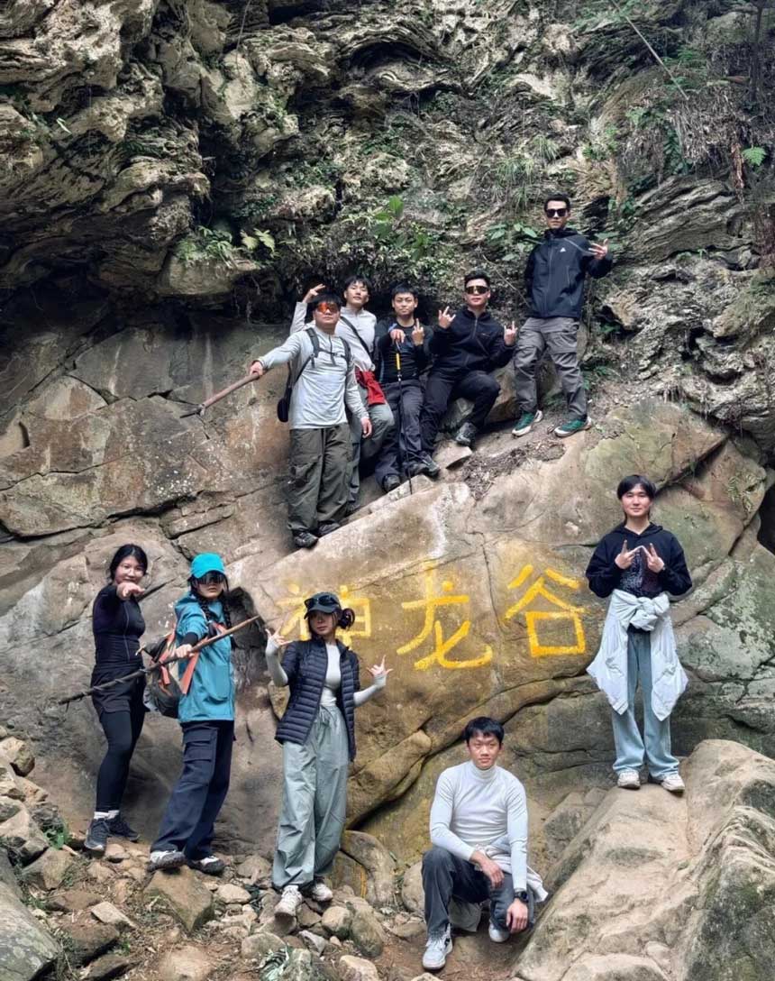 路线:起点—五龙湖—瀑布—竹林小径—瀑布区—豹子岭山脚—返程概况:全程徒步约11公里,耗时约6-8小时,累计爬升约800米;全程路线非常丰富,峡谷穿梭,攀岩,绳索,土路,野穿,屁降,一次体验拉满。亮点:冬日峡谷间雾凇点缀,行至豹子岭山脚可远眺金佛山余脉景色,最后段乡村路感受渝南乡村冬日风貌,一步一景皆有野趣。02 装备准备