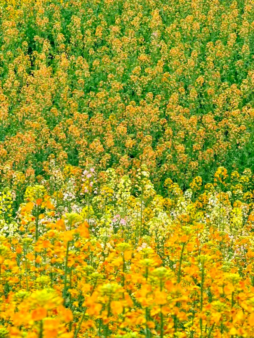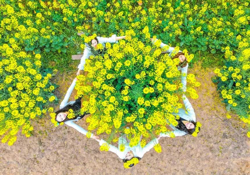 徜徉油菜花花海 碧绿的花蕾到金黄的花朵 在春风的吹拂下轻轻摇曳 散发出淡淡的香气 令人心旷神怡
