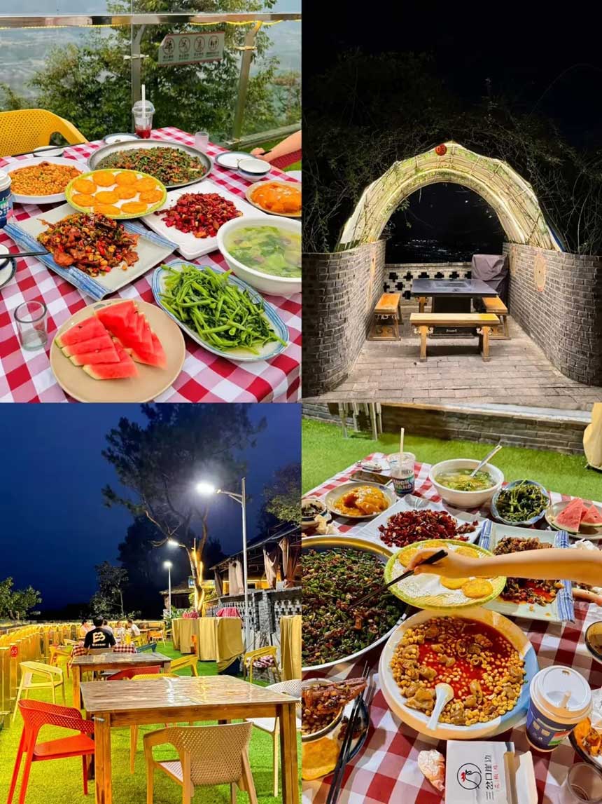 暖黄光晕漫过玻璃幕墙,蔷薇影与远山叠印其上。茶盏轻磕处,抬头忽见渝州城池的灯海,正在脚下幽谷间无声翻涌。花影浮沉间,一席山肴竟尝出星垂平野的况味——原来所谓闲情,不过是就着半盏山茶,把整座春山咽下。