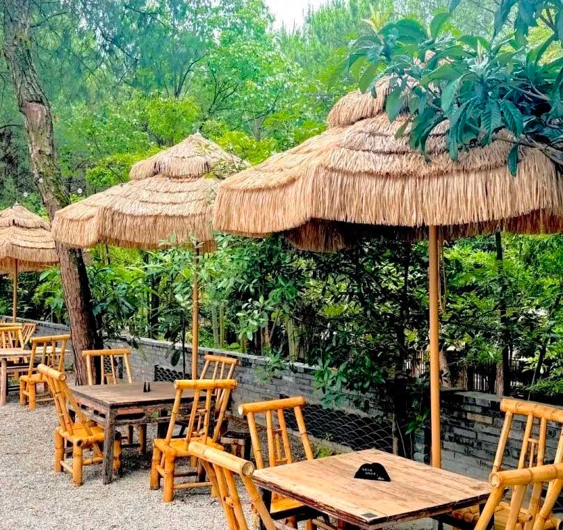 梁下吊着干花束,落地长窗收尽四季峰峦。竹帘滤过天光,白墙映着野蔷薇疏影。露台晒着新摘花椒,麻香漫过松木栏杆。入夜山月清冷,石阶旁夜来香悄然吐蕊——半院存着人间烟火气,半院浸透山野闲趣。