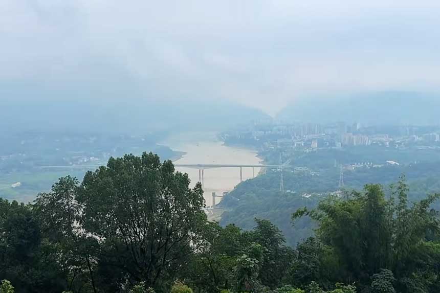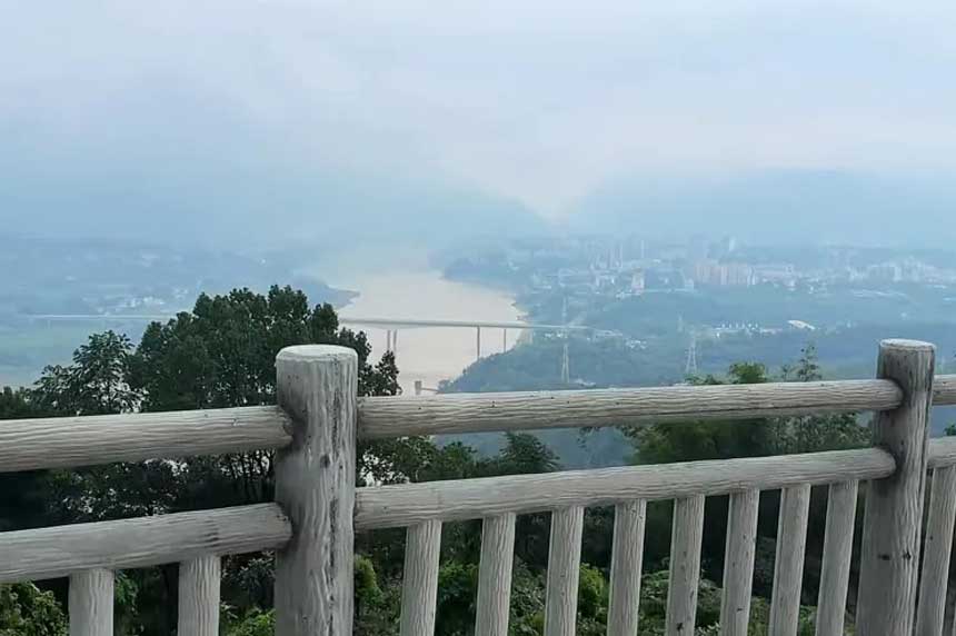 随后下山沿缙云山环线前往 【棋盘寨观景台】 新打造的观景平台 站在这里可观北碚老城全景 感受嘉陵江的壮丽景色 站在这里 仿佛嘉陵江是从自己的“口”中吐出