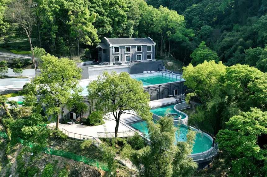 继续前往至 【新北温泉公园】 北临嘉陵江,南倚缙云山 结合峡江生态 打造临崖泡池 层叠跌泉等特色泡池 可俯瞰江景与山林 泡一泡可洗去一身的疲惫
