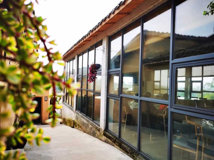 农家大院古朴典雅,庄重大气, 一步一景,主打一站式游玩服务, 绿荫与湖面相呼应,如精美画卷一般,美不胜收。