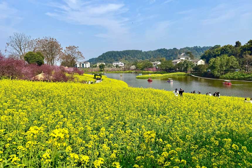 只需1小时车程,就能从钢筋水泥的城市,一头扎进巴南天坪山云林天乡的春日怀抱。这里,300余亩油菜花已迎春绽放,红梅、樱花点缀其间,与蓝天白云、远山农舍构成一幅流动的乡村油画。