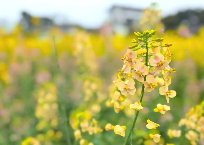 以前总觉得油菜花只有明黄一种样子 到了这儿才知道 原来油菜花能开出这么多花样 嫩粉的、奶白的、带着橘调的 还有花瓣边缘晕着浅紫的