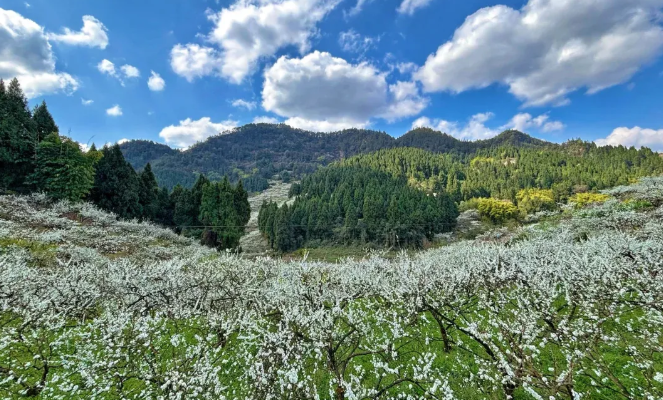 这里以花为景,以山为衬 以田园为底色 勾勒出一幅恬淡自然的春日画卷 成为不少人心中小众又高级的赏花秘境 想get同款壁纸级美景吗? 印盒李花观赏攻略请收好.