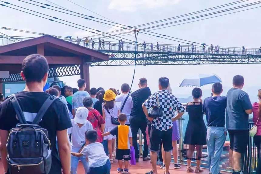 奥陶纪景区18米悬崖秋千、悬崖自行车、火箭蹦极、步步惊心等惊险刺激项目仍是年轻人的最爱。