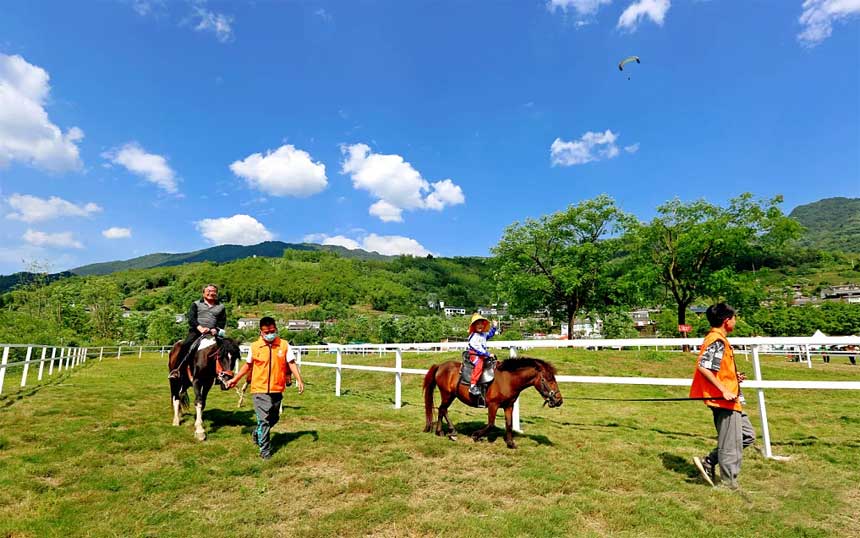 位于鱼子新区的嘉游运动小镇开园迎客,马术场、草地卡丁车、草地帐篷、滑翔伞等项目受游客追捧。
