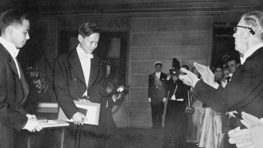 回看1956年的那场诺贝尔颁奖典礼,作为有史以来最年轻的诺贝尔奖获得者。