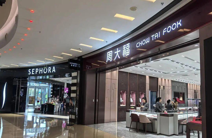 10月22日,扬子晚报/紫牛新闻记者走访南京河西某商业综合体发现,老凤祥足金挂牌价1149元/克,工费另计;周大福足金1235元/克,工费另计。多家门店推出促销活动,如周大福每克减50元,潮宏基减80元,吸引不少顾客驻足挑选。
