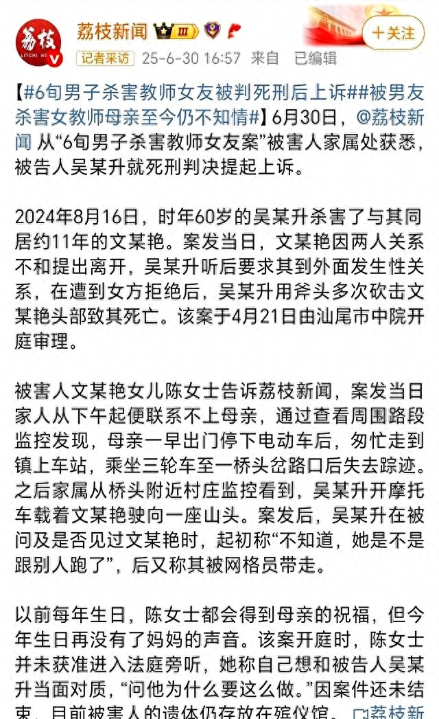 陆丰60岁吴某山林持斧杀同居女友,拒野外关系后当场下狠手