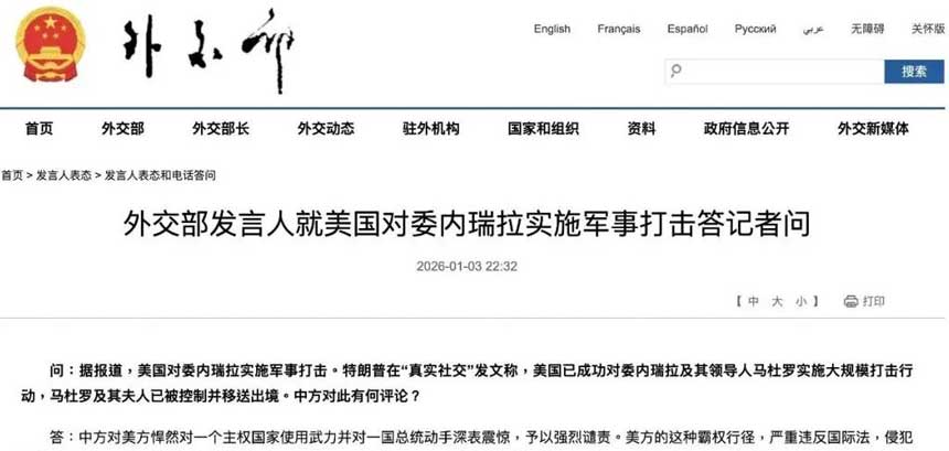 美国总统特朗普美国东部时间3日凌晨证实,美军对委内瑞拉发动大规模军事打击,并抓获委内瑞拉总统马杜罗。以下是自2025年8月7日以来美国对委内瑞拉进行军事威胁和打击的时间线:——2025年8月7日,美方悬赏5000万美元缉拿马杜罗。这一金额相比此前翻番。美方宣称其涉嫌通过犯罪组织向美国输送毒品。——2025年8月20日,据美国媒体报道,特朗普以“打击拉美贩毒集团”为由,在邻近委内瑞拉的加勒比海水域部署一支两栖舰队。——2025年9月2日,特朗普称,美军在南加勒比海袭击一艘“从委内瑞拉出发的运毒船”,打死11人。——2025年9月11日,马杜罗宣布启动“独立200计划”,在全国284个“前线”地点部署军队、警察和民兵。——2025年10月6日,《纽约时报》报道称,美方已决定“关闭与委内瑞拉的所有外交接触渠道”。——2025年10月15日,特朗普说,他已授权美国中央情报局在委内瑞拉开展秘密行动,并声称五角大楼正考虑在委内瑞拉领土内发起“反毒”打击。——2025年10月26日,美军导弹驱逐舰“格雷夫利”号停靠特立尼达和多巴哥(特多)首都西班牙港。特多与委内瑞拉隔帕里亚湾相望,海岸线间隔最近处仅约10公里。——2025年11月11日,美国海军发表声明说,美军最大航空母舰“杰拉尔德·R·福特”号率领的航母打击群当天抵达美军南方司令部责任区,部署在加勒比海。——2025年11月11日,马杜罗签署《整体防御指挥法》,并下令组建多个由公民、军人和政府官员组成的综合防御司令部,以应对可能发生的“武装冲突”。——2025年11月13日,美国国防部长赫格塞思宣布,美军在西半球发起打击“毒品恐怖分子”的军事行动,代号为“南方之矛”。——2025年11月21日,美国联邦航空局向多家重要航空公司发出警告,鉴于“安全局势恶化”以及“委境内和周边军事活动加强”,任何民航客机飞越委内瑞拉领空都会“面临危险境况”,各航企需“谨慎行事”。——2025年11月29日,特朗普在社交媒体发文说,委内瑞拉上空及周边空域“被视为全面关闭”。——2025年11月30日,特朗普证实与马杜罗近期通过电话。《迈阿密先驱报》援引消息人士的话报道说,白宫在电话中要求马杜罗立即辞职,以换取他和家人安全离开委内瑞拉。——2025年12月9日,《迈阿密先驱报》报道,两架美国F-18战机进入委内瑞拉领空,并在委领空内停留了至少40分钟。——2025年12月10日,特朗普说,美军在委内瑞拉附近海域扣押了一艘油轮。——2025年12月16日,特朗普下令对所有进出委内瑞拉的受美国制裁油轮实施“全面彻底的封锁”,宣布把马杜罗政府列为“外国恐怖组织”,宣称要强化对委军事围困,“直到美国拿回此前被委内瑞拉夺走的全部石油、土地和其他资源”。——2025年12月17日,美军南方司令部在其官网上发布消息说,“南方之矛”联合特遣部队在国际水域对一艘“被认定为恐怖组织的船只”实施打击,打死船上4人。——2025年12月18日,美军南方司令部发布消息说,美军“南方之矛”联合特遣部队在东太平洋对两艘“被认定为恐怖组织的船只”实施打击,打死5人。——2025年12月19日,据美国媒体报道,特朗普在接受采访时说,不排除与委内瑞拉开战的可能性。——2025年12月20日,美国国土安全部长诺姆证实,美国海岸警卫队在委内瑞拉附近海域扣押了一艘油轮。——2025年12月22日,特朗普再次向马杜罗施压,称自己的目标是迫使马杜罗下台。——2025年12月23日,委内瑞拉全国代表大会一致通过《保护航行和贸易自由免受海盗行为、封锁和其他国际非法行为侵害法》。——2025年12月29日,美军南方司令部发布消息说,美军“南方之矛”联合特遣部队在东太平洋对一艘“被认定为恐怖组织”的“贩毒船”实施打击,打死2人。——2025年12月29日,特朗普说,美国在对委内瑞拉行动中袭击了一处“大型设施”。据美国有线电视新闻网报道,美国中央情报局当月早些时候对委内瑞拉沿海一处港口设施实施了无人机打击,这是已知的美国首次对委内瑞拉境内目标发动袭击。——2025年12月31日,美军南方司令部发布消息说,美军“南方之矛”联合特遣部队12月30日对3艘所谓“贩毒船”实施打击,打死至少3人。“南方之矛”联合特遣部队12月31日打击了两艘所谓“贩毒船”,打死船上5人。——2026年1月3日,2时左右,新华社记者在委内瑞拉首都加拉加斯听到当地上空传出多声巨响。委内瑞拉政府发表官方公告,强烈谴责美国现政府对委内瑞拉领土和人民实施“极其严重的军事侵略”,并宣布在全国范围内实施国家紧急状态。——2026年1月3日,特朗普通过社交媒体发文说,美国成功对委内瑞拉实施大规模打击,已抓获马杜罗及其夫人并将他们带离委内瑞拉。