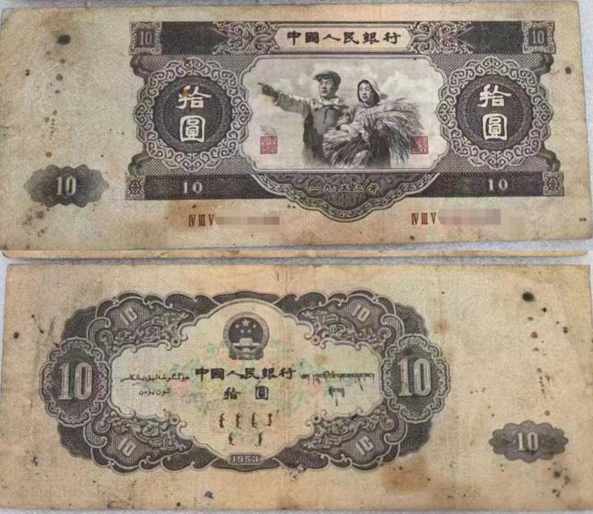 由于当年咱们的技术跟不上,这张钞票是前苏联代为印刷的。后来中苏关系破裂,国家在一个月内紧急限期回收销毁。这也导致了1953年10元的存世量极其罕见。现在一张全新品相的大黑十,市场行情稳稳站在十几万元以上,哪怕是张烂票子,也能卖出让你惊掉下巴的价格。