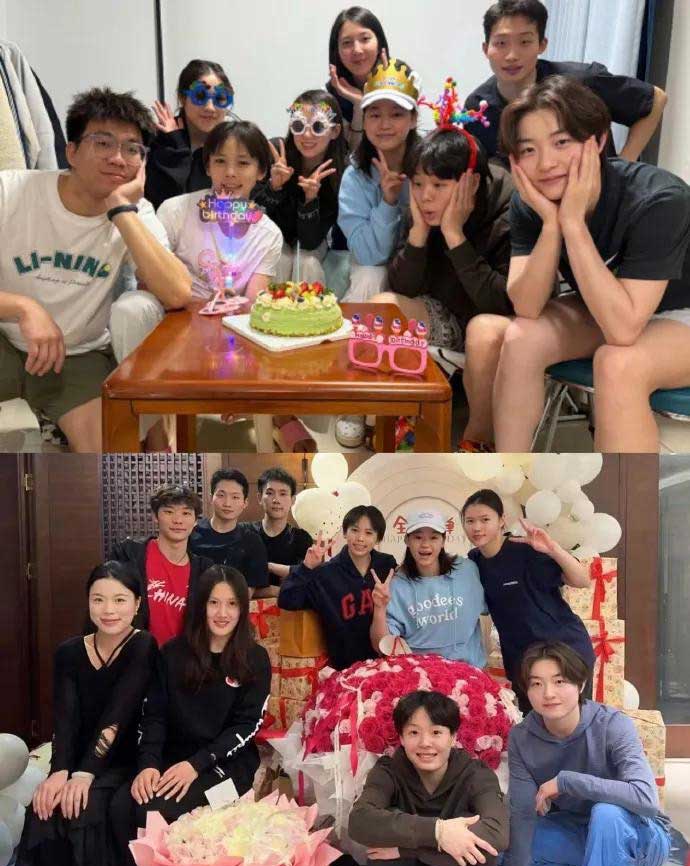 国家队的队友们特意为她布置了房间,气球、蛋糕一应俱全,陈艺文、司雅杰等伙伴围在她身边,打闹着抹蛋糕。