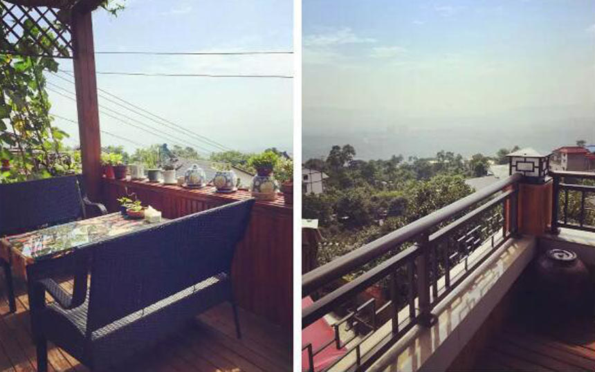 顶楼是休闲区域,有书房和茶室,远眺山景,美不胜收。