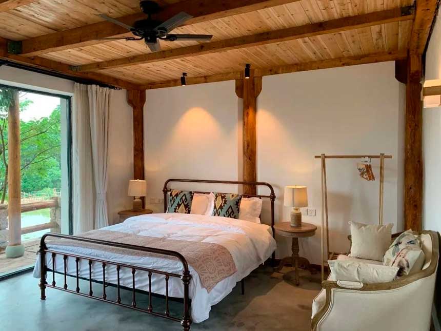 由原始农家土屋改造现代与乡村气息结合将昔日废旧的土房,修建成一个奇幻空间,外立依旧古朴,内里极具设计感与穿越感。推窗见茶山云海,低头是油菜花海,枕山而居,清晨被鸟鸣唤醒,夜晚看星空闪烁,围炉煮茶、看书发呆、庭院小聚、林下漫步,在这里,时间变慢,烦恼消散,逃离城市喧器,躲进山野秘境。