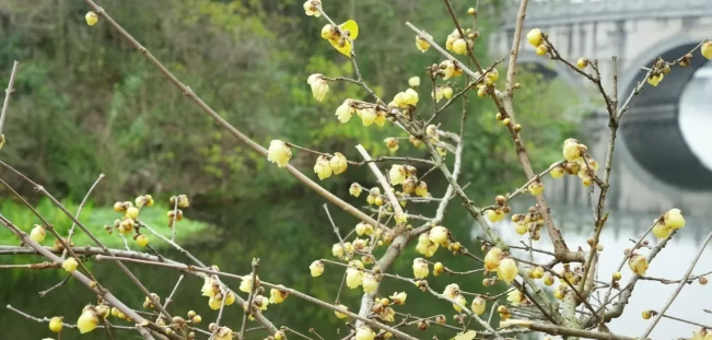 “快看,真的开了,好香啊!”在重庆园博园巴渝园古雅的院落旁,市民陈女士带着5岁的女儿,循着一丝清甜的冷香,惊喜地发现了枝头初绽的蜡梅。