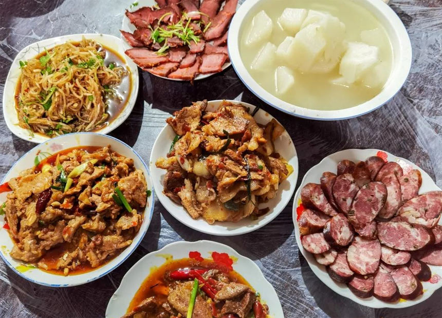 在杀猪的日子里,主人家会盛情邀请亲朋好友共赴“刨猪汤”的盛宴。在杀猪当天,人们制作“刨猪汤”系列菜肴,与亲朋好友共享美味佳肴。这一习俗不仅承载着联络情感的深厚意义,更是对丰收与庆贺的美好表达。