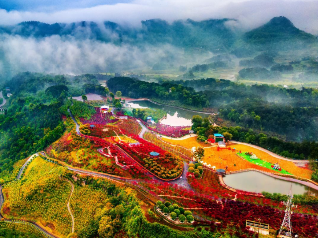 从市区驱车约1小时,便闯入一片绚烂秋色。千亩“格桑花+向日葵”花海正值盛期,是摄影与亲子家庭的乐园。景区更推出“花海露营”,白天赏花,夜晚观星,尽享乡村慢生活。